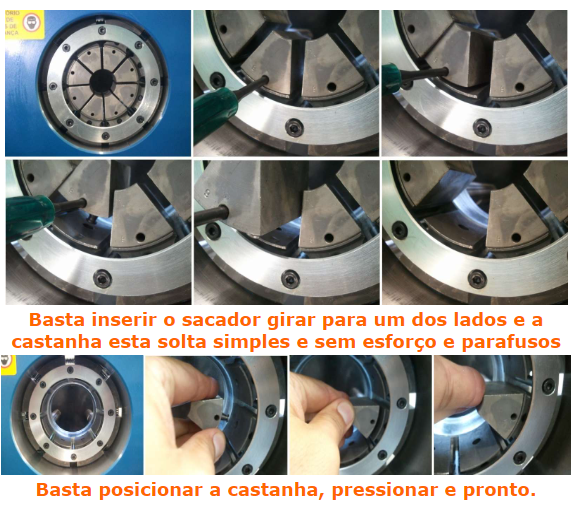 A Prensa de Terminais Hidráulicos ou Prensa de Mangueiras Hidráulicas possuem Sistema Troca Rápida: As 08 castanhas do jogo são substituídas rapidamente reduzindo o tempo de produção.